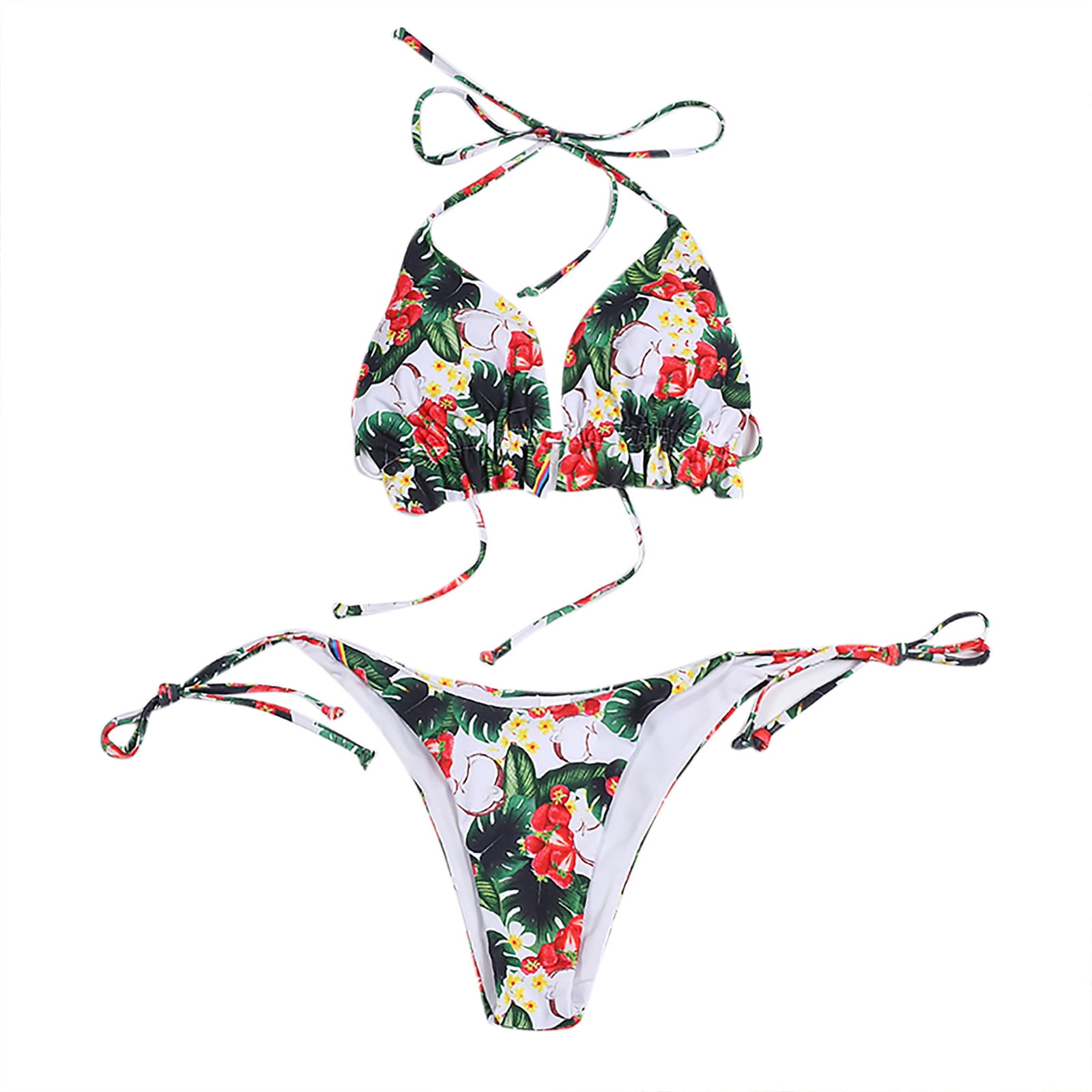 Cobkk Womens Swimsuits Petite Bikinis Tops Women S New Fashion Sexy Open Back Strap Split Swimsuit Printed Bikini Floral Swimsuits For Women Casual Comfy Dressy Swimwear For Women C M Walmart Com